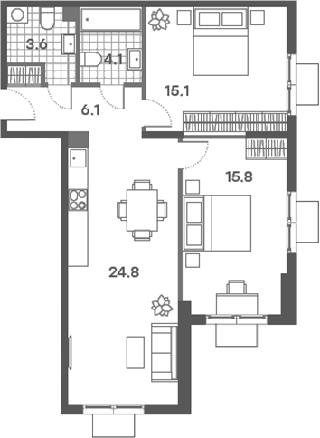 м. Котельники 15 мин пешком 1 кв. 2028 - 4 кв. 2028 1, 2, 3 комнаты от 26.62 до 83.73 м2 от 6,8 до 20,6 млн. руб